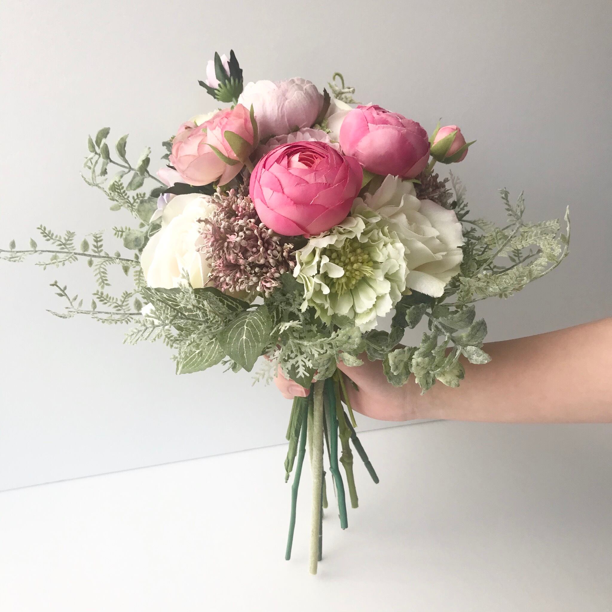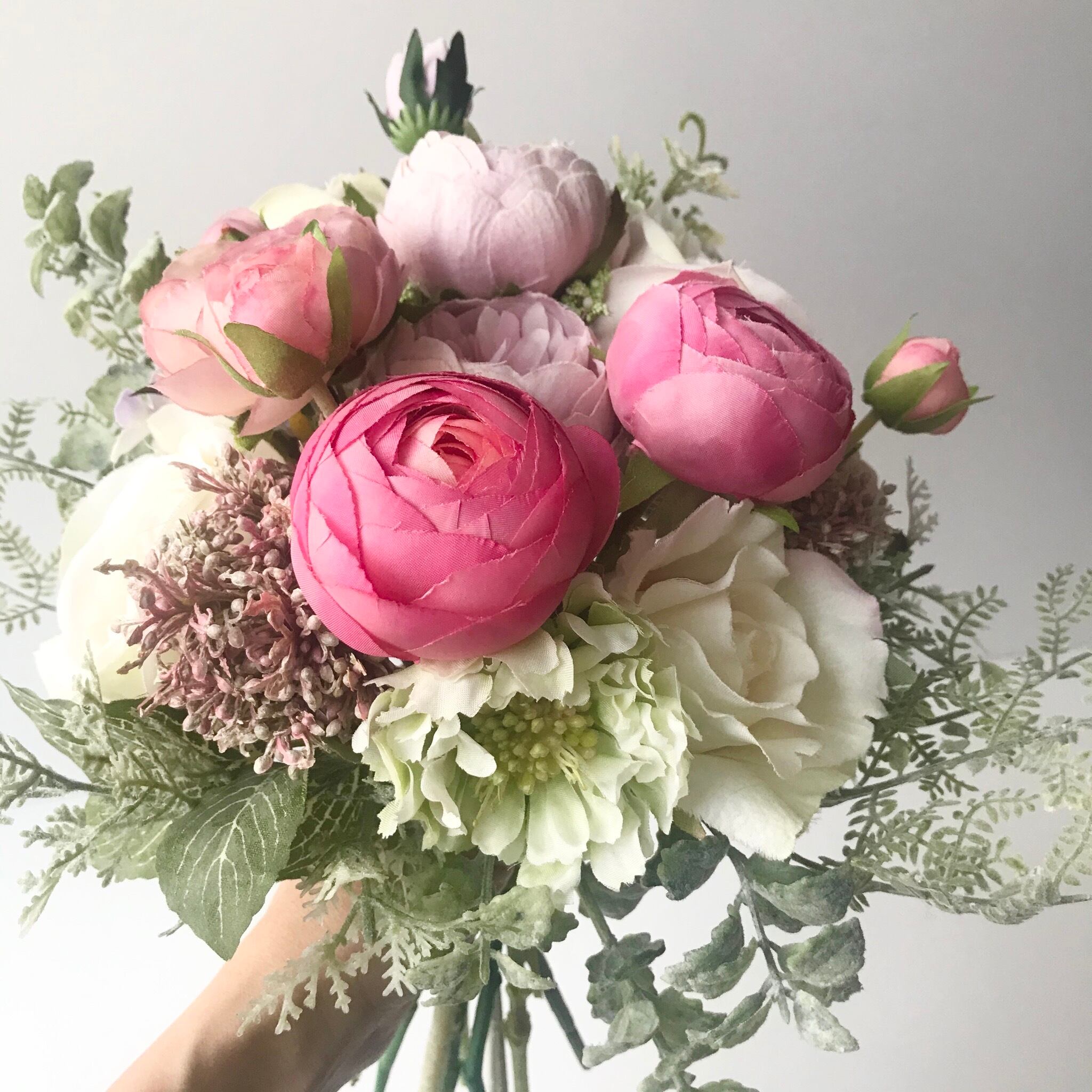 ラナンキュラス、バラ等使用したブーケです。全て高品質のアーティフィシャルフラワーを使用していますので、前撮り ウェルカムスペース 海外ウェディングにもお使い頂けます。